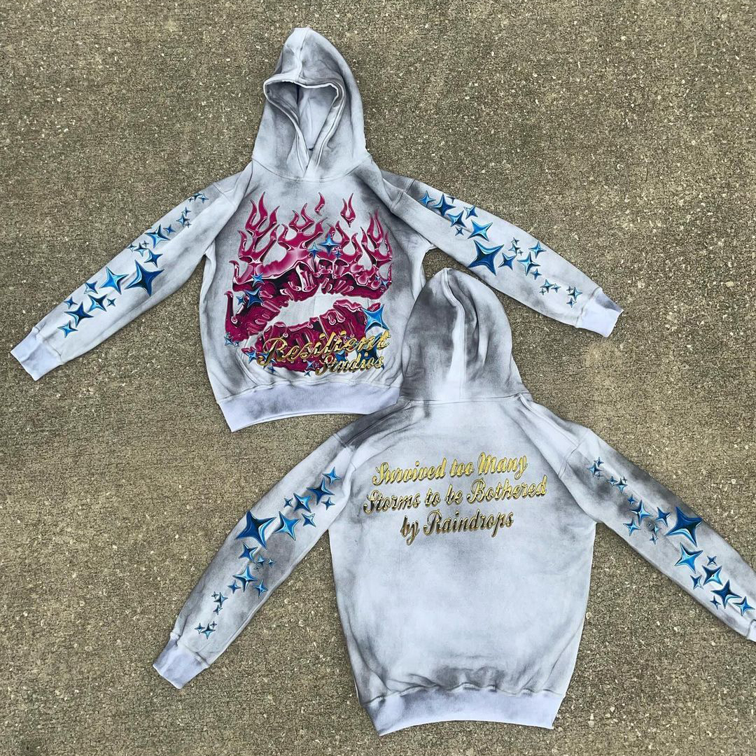 Multi-Element Print Hoodie Sweatpants Two Piece Set