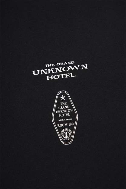 "THE GRAND UNKNOWN HOTEL" PRINT ON CHEST