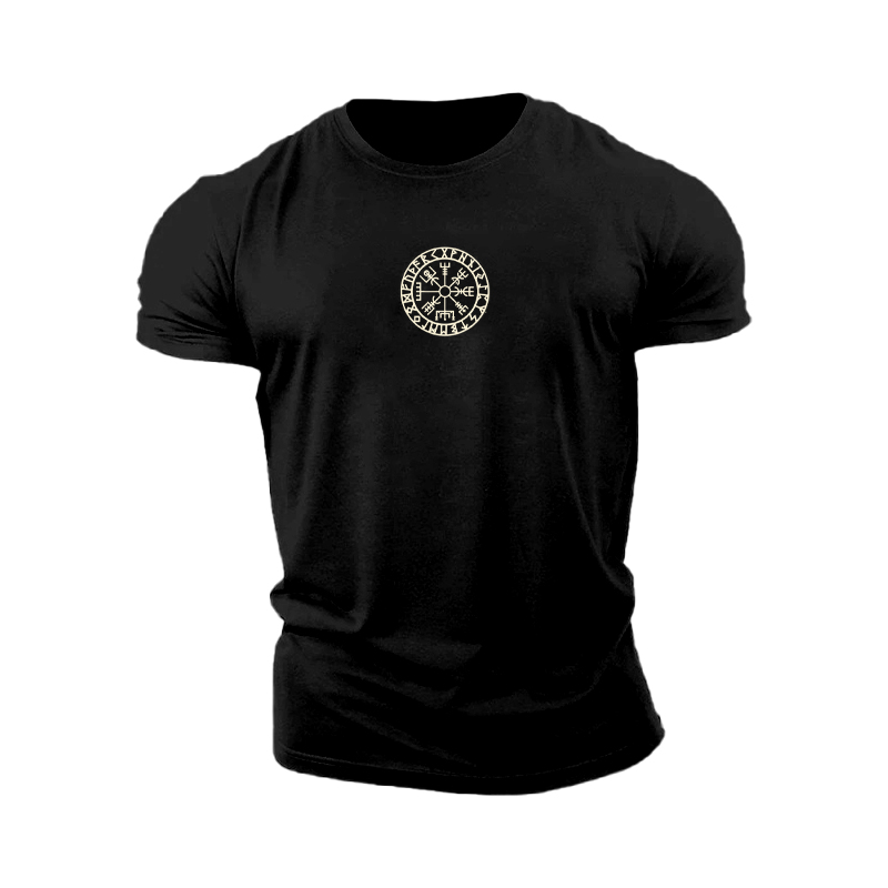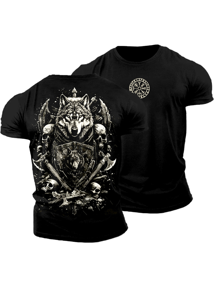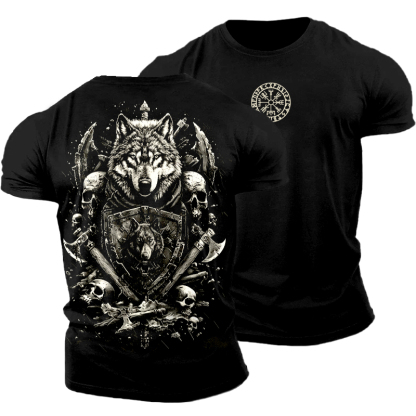Vegvisir Viking Wolf Runes Graphics Cotton T-shirt