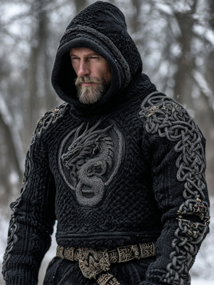 Viking Dragon Totem Men's Chunky Knit Hooded Sweater