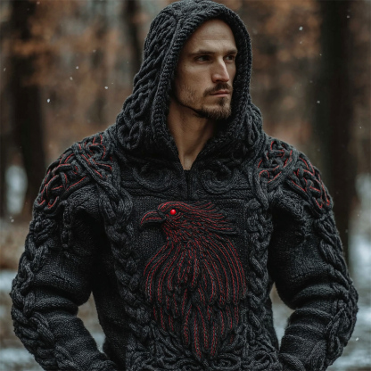 Viking Red-eyed Raven Halloween Art Men's Hooded Sweater