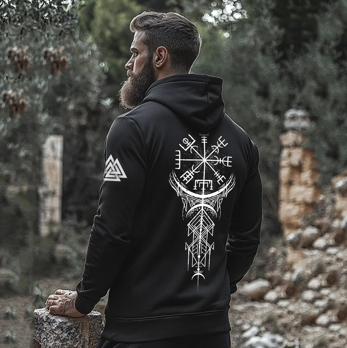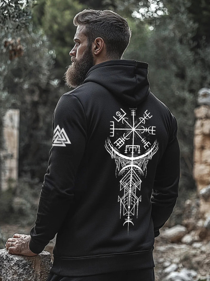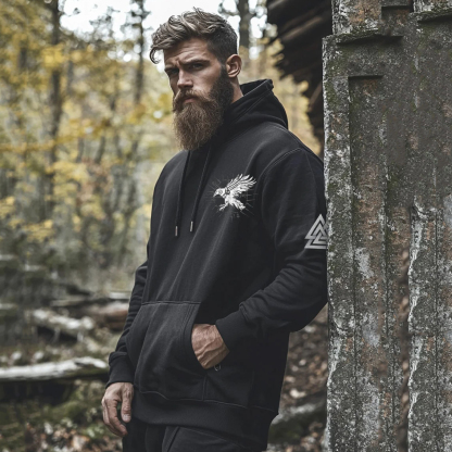 Vikings Printed Totem Vintage Raven Casual Sports Hoodie
