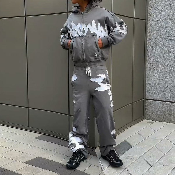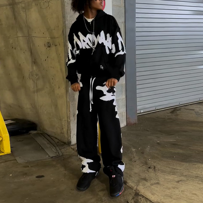 Vintage patch lettering hoodie set