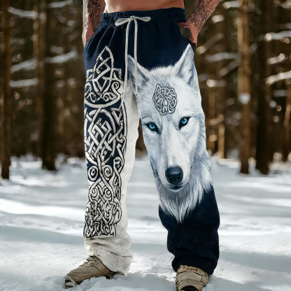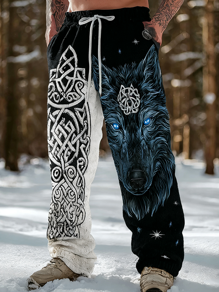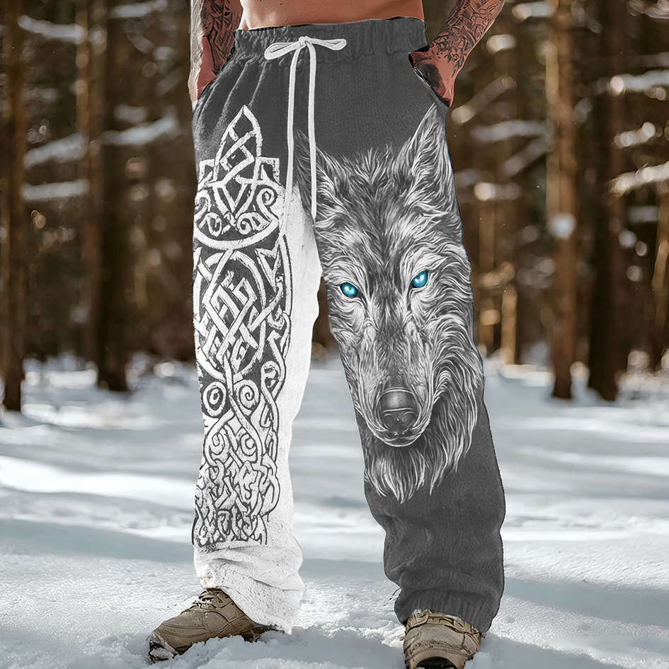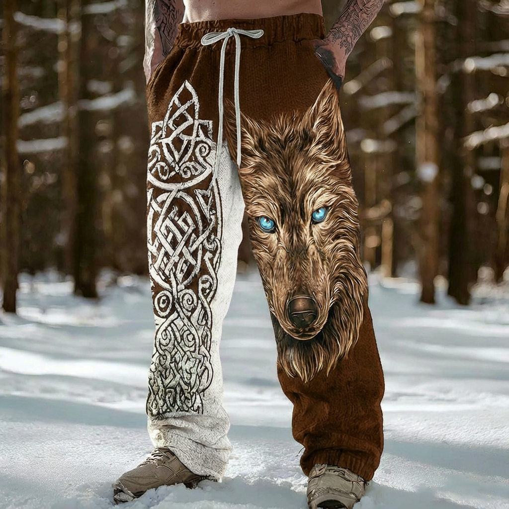 Vintage Viking Celtic Wolf Mythology Men's Knit Leisure Long Pants