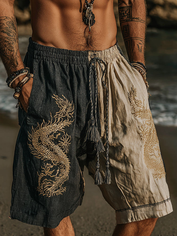 Vintage Viking-inspired Retro Dragon Totem Casual Linen Shorts