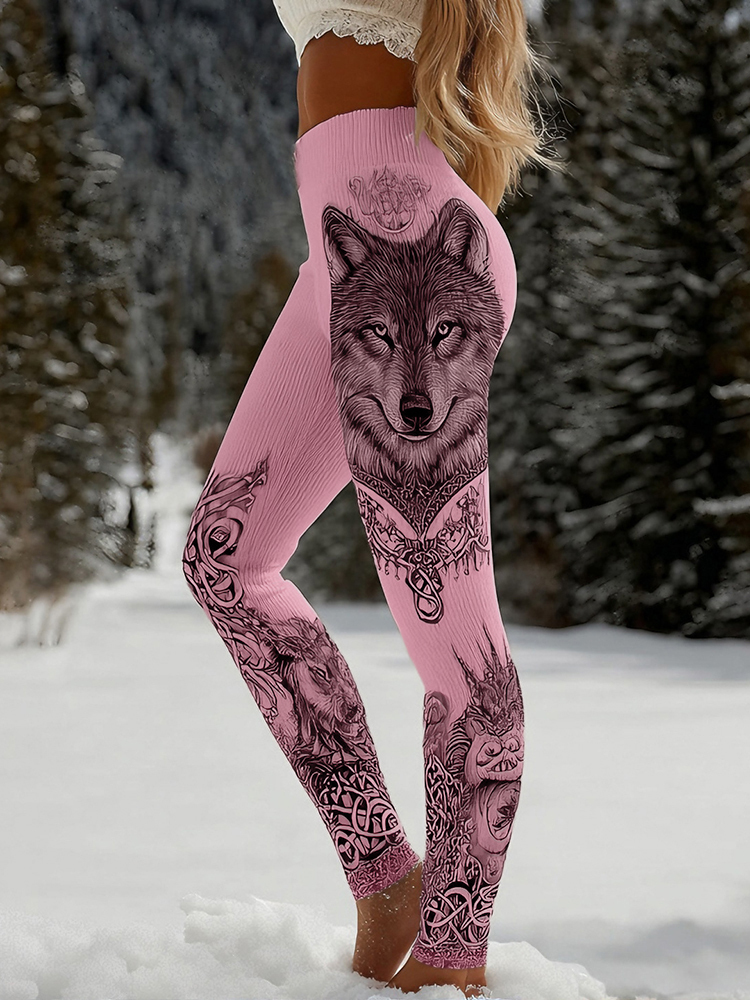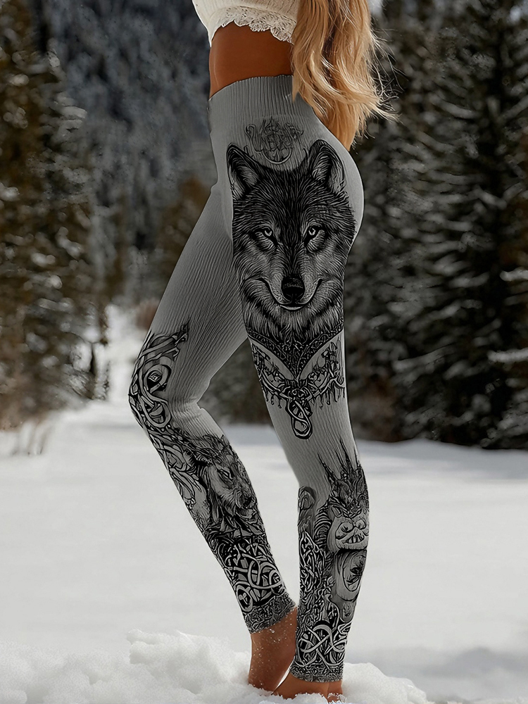 Vintage Viking Inspired Wolf Pattern Comfy Leggings
