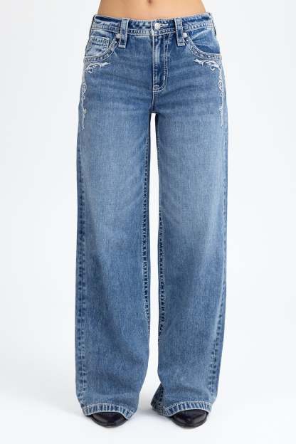 - Embroidered wing yoke and filigree detailing
