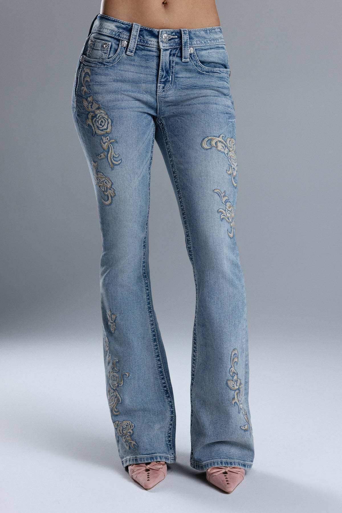 Washed finish, mid-rise flare jeans