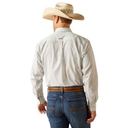 Ariat Mens White Irving Long Sleeve ShirtStyle: Long Sleeve Shirt Closure: Button Down Classic Fit Model is 6' wearing size Medium