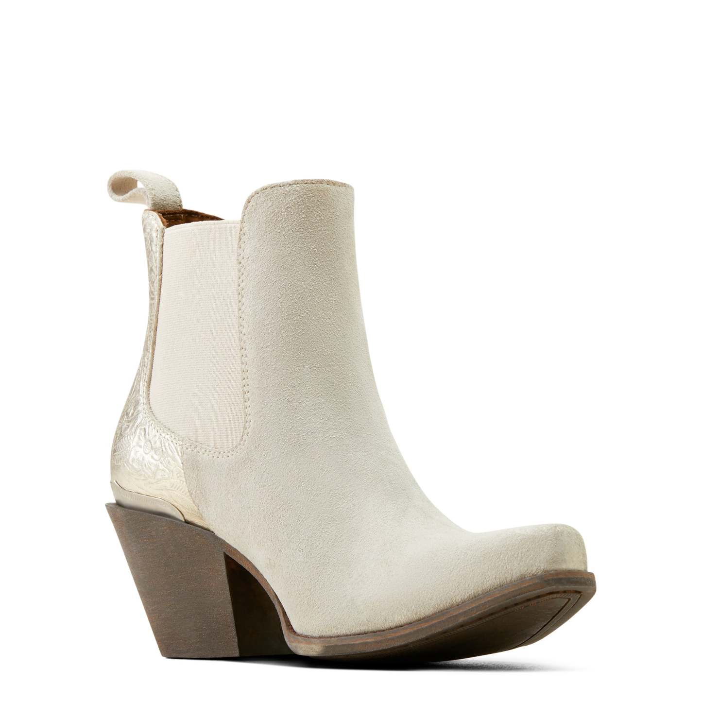 Ariat Womens Bradley Cloud White BootiesElastic Side Panels 5.5" Height 2.5" Heel Height Snip Toe Consumers say this fits: Slightly Large
