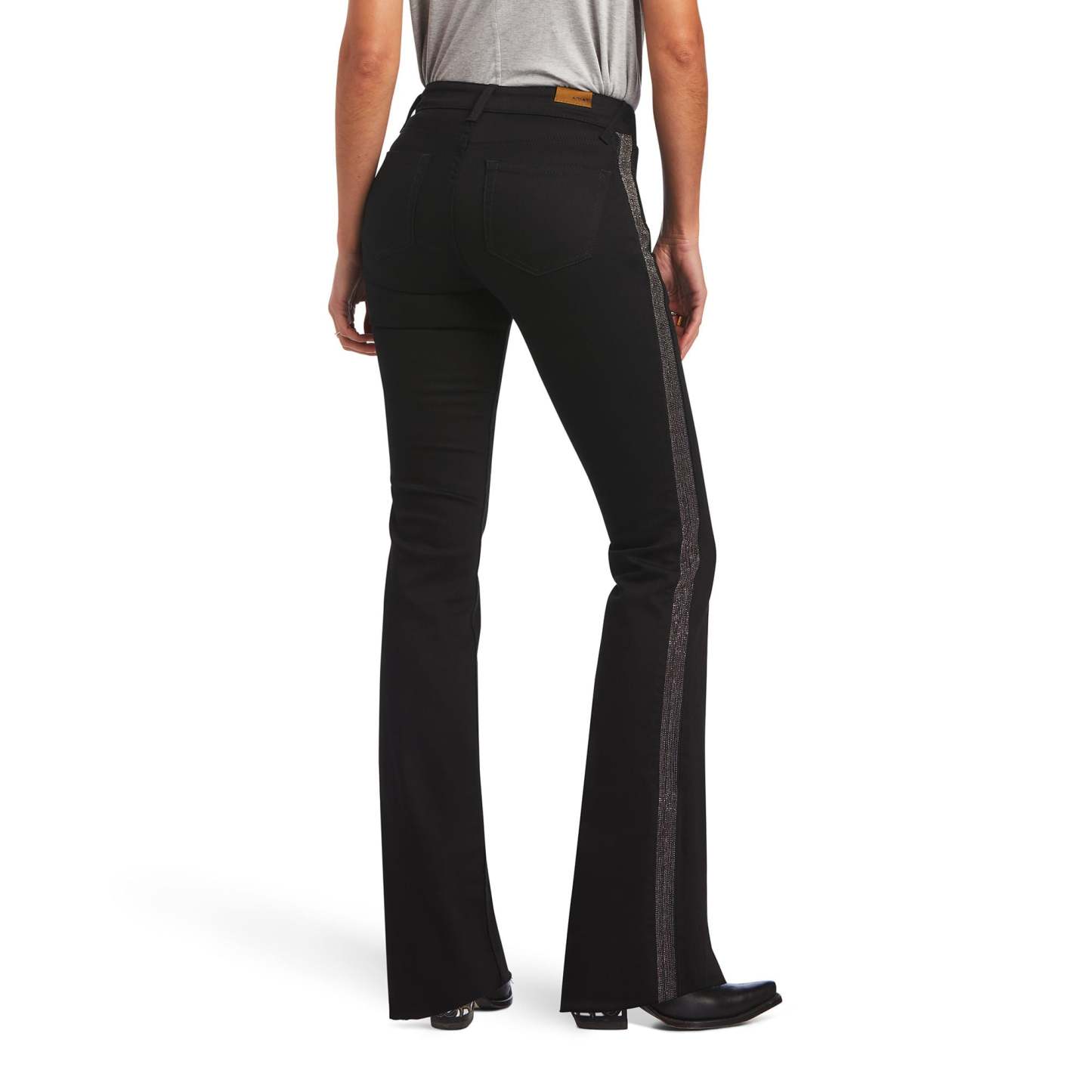 Ariat Womens Slim Trouser Chain Stripe Wide Leg JeansSlim through hip and thigh, widens just above the knee High rise Wide leg Waistband that won't gap A seat that won't sag