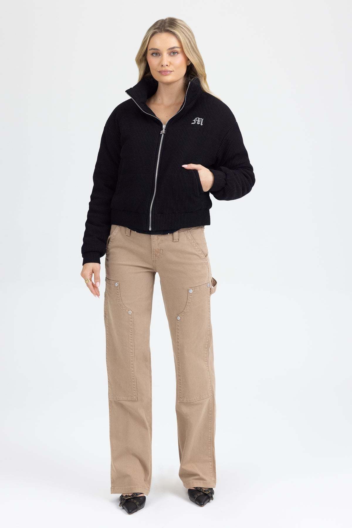 Low-rise, slim-wide utility jeans