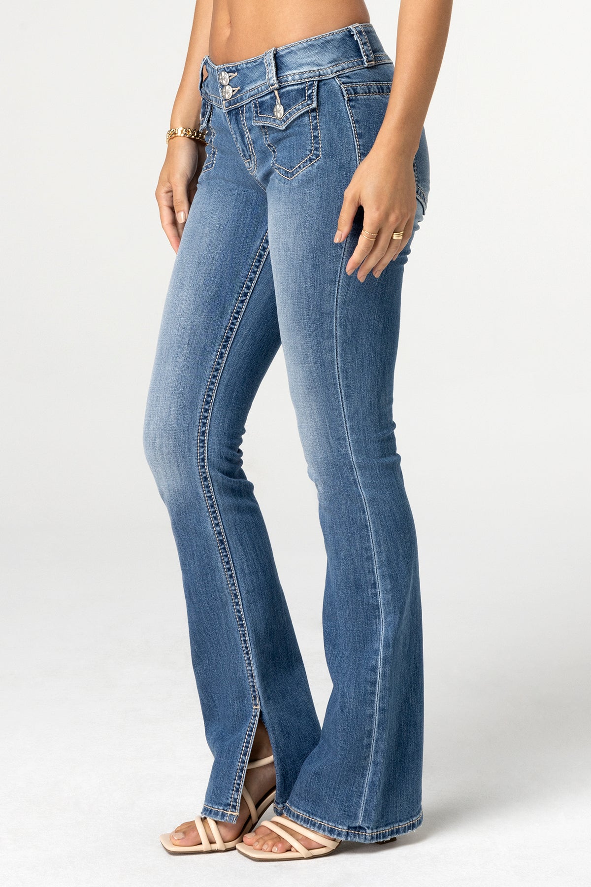 Mid-rise, light-wash bootcut jeans