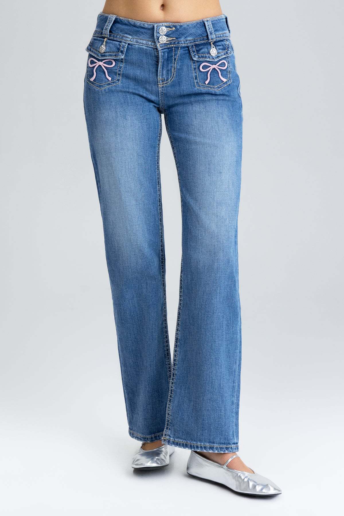Mid-rise, slim wide jeans