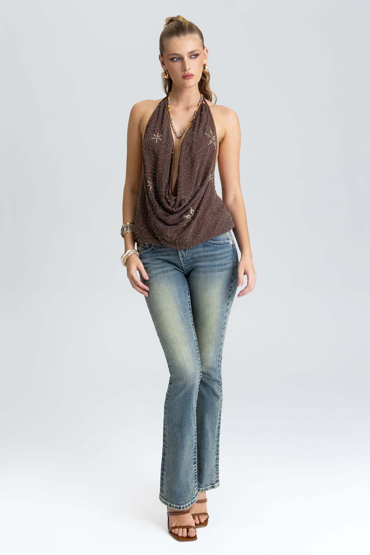 - Rhinestone rivet accents