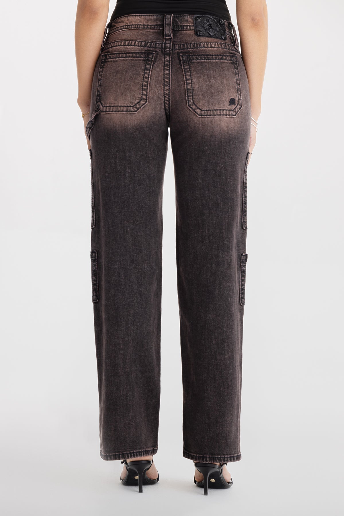 - Embossed black studded leather cross Miss Me brand patch