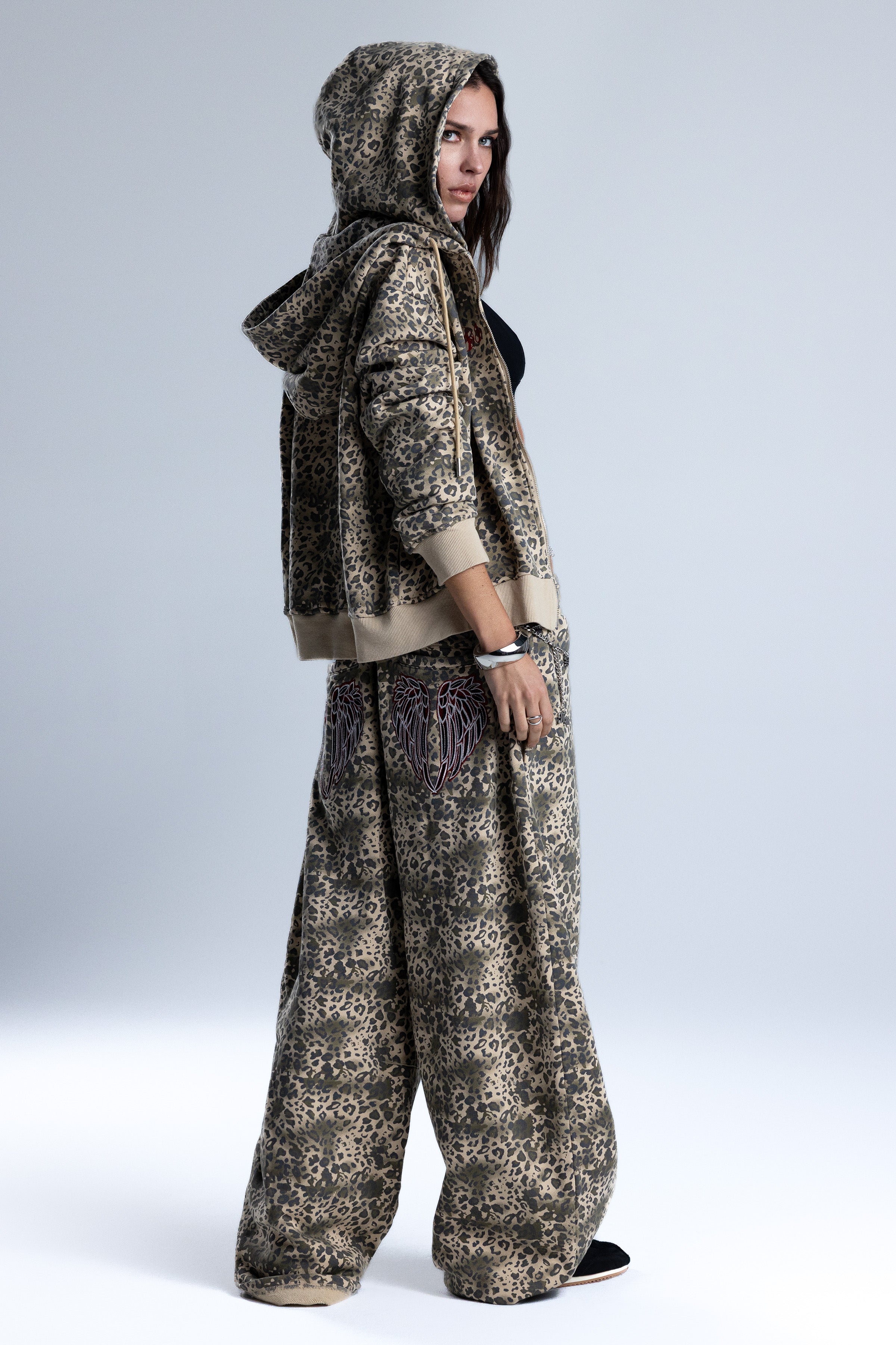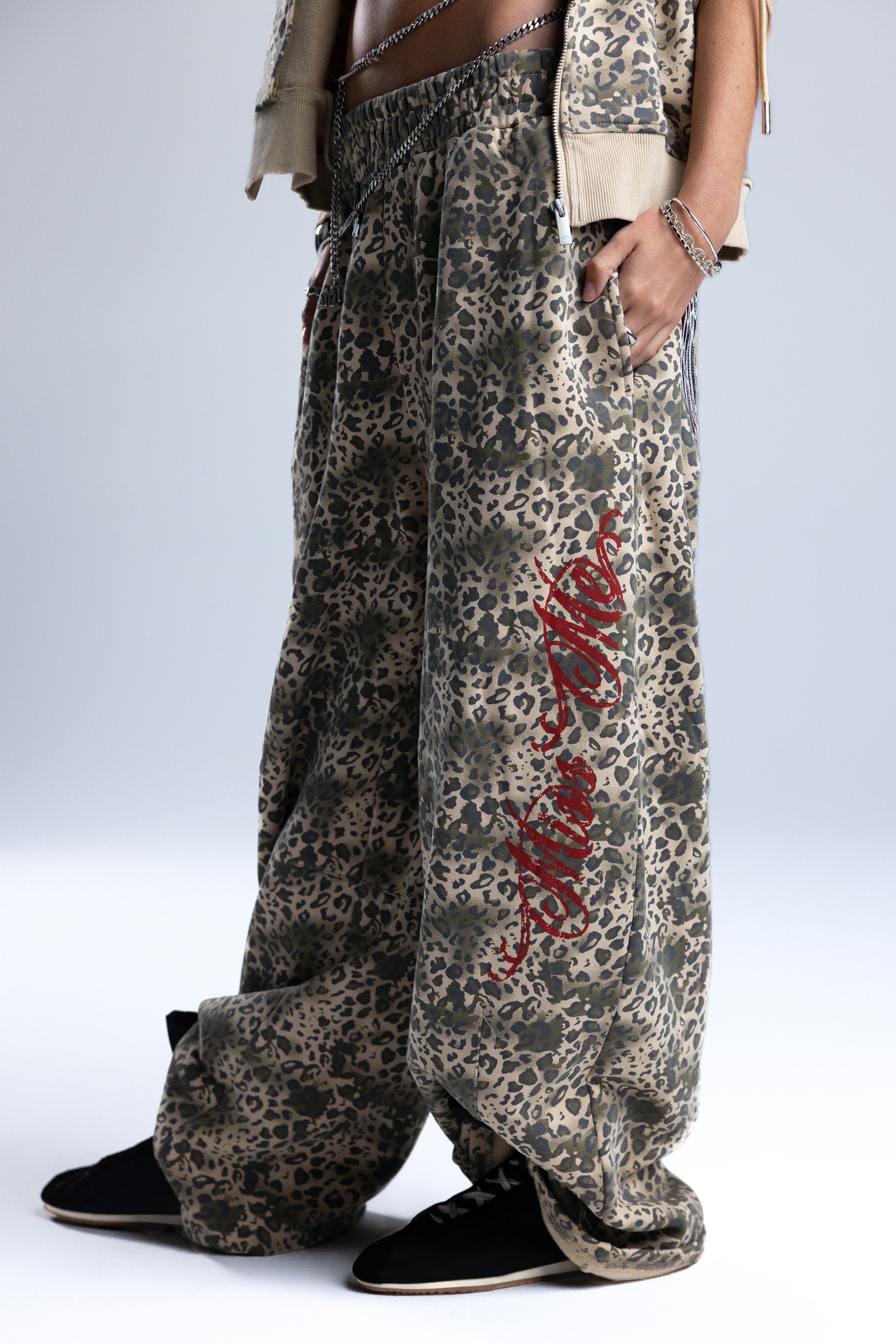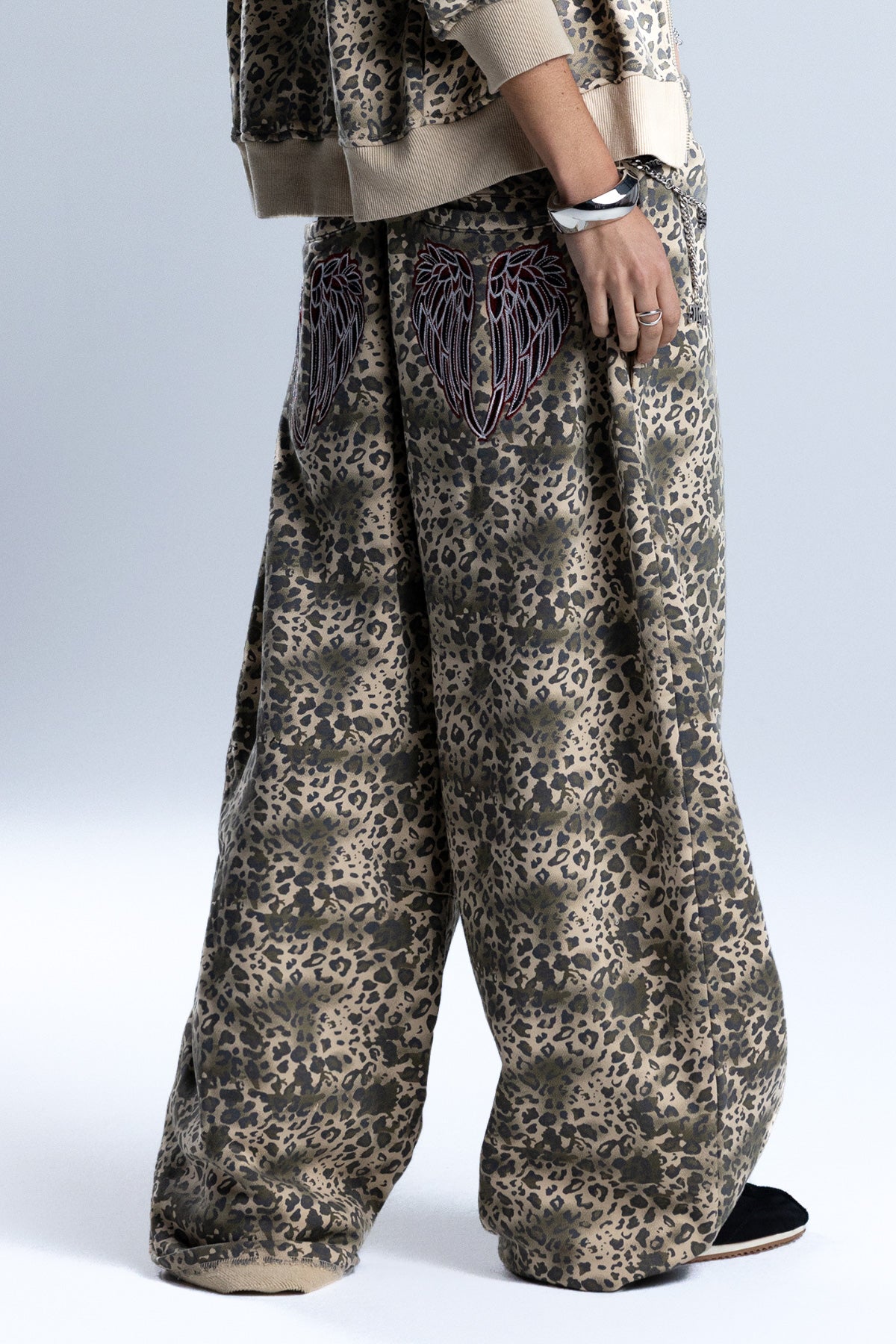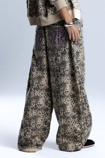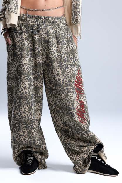 Relaxed fit leopard wide-leg sweatpants