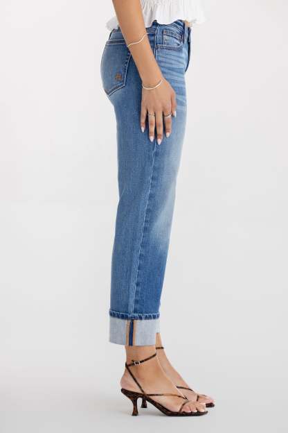 Washed, mid-rise 90s crop straight jeans
