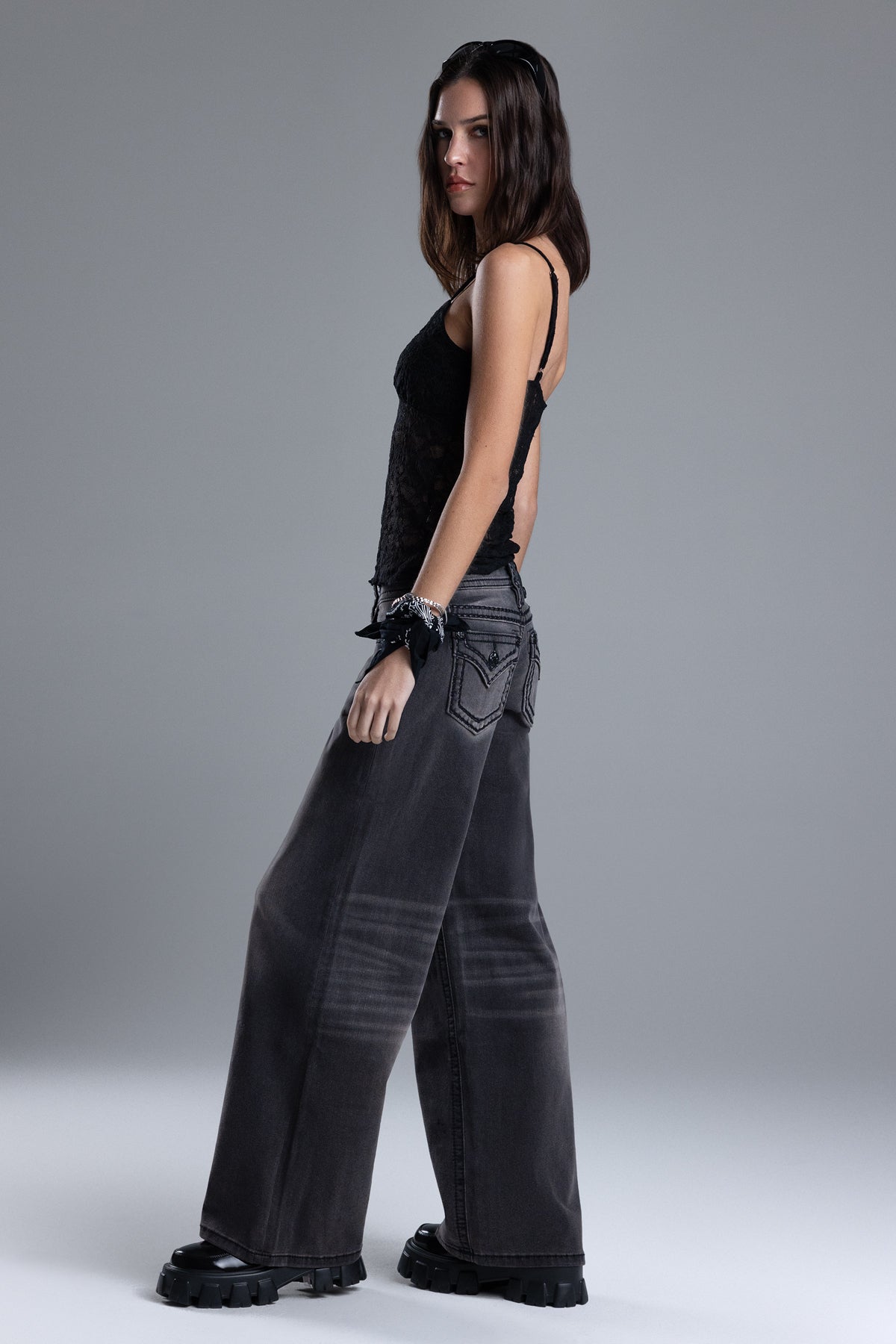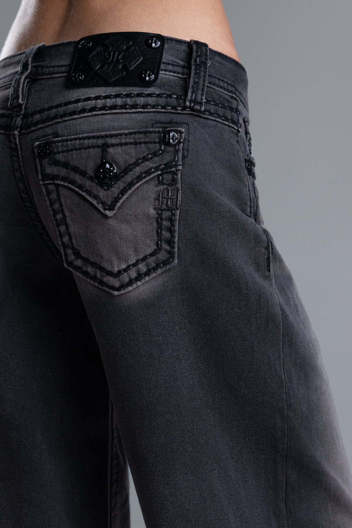 - Faux flap pocket with mini black Miss Me logo