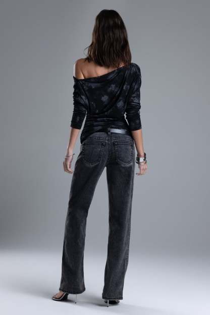 Washed, low-rise wide-leg jeans